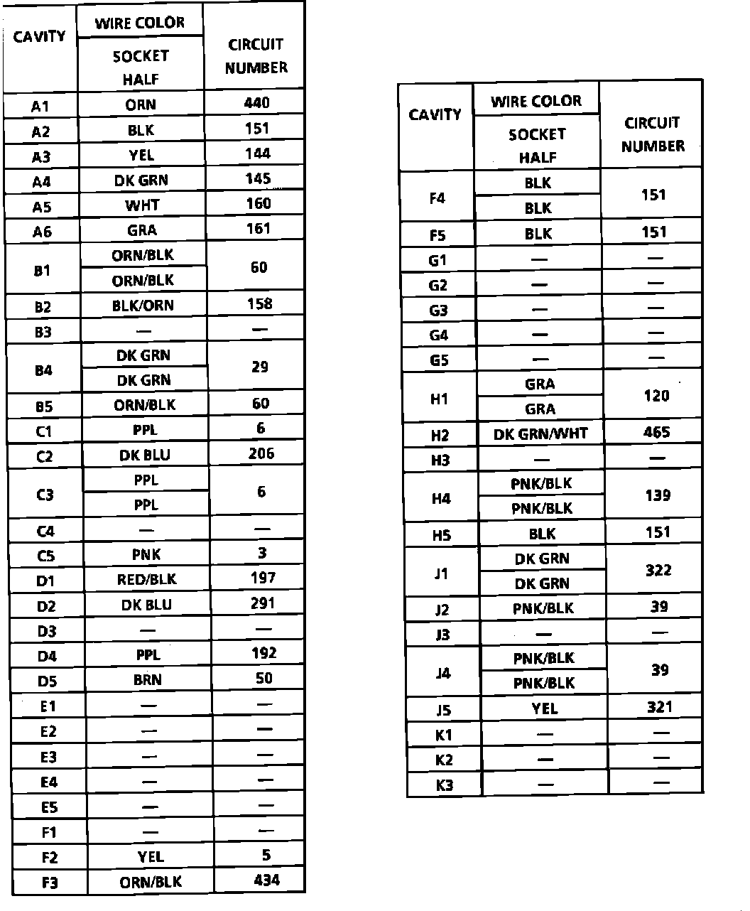 Accessory Relay Panel Connector Face: