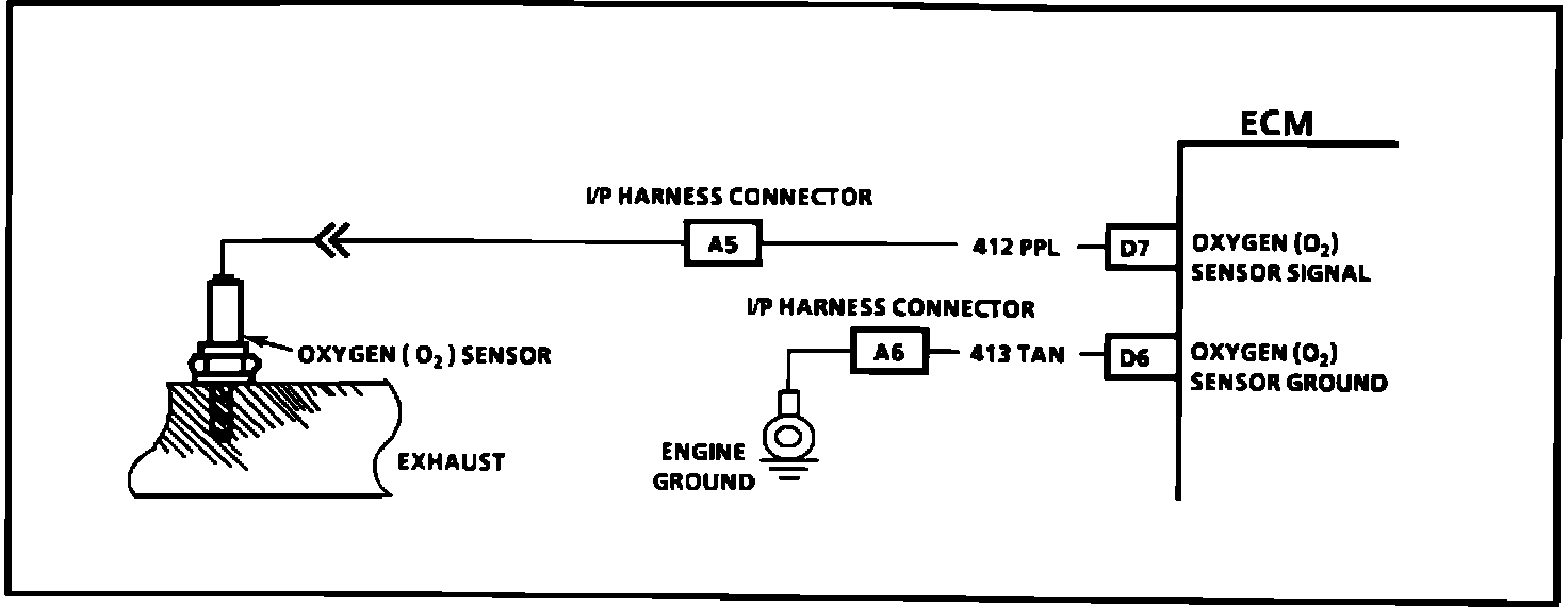The oxygen sensor is located in the exhaust system. The sensor monitors atmospheric air versus exhaust gas oxygen content to produce a voltage output. This voltage ranges from approximately 0.1 volt (high oxygen - lean mixture) to 1.0 volt (low oxygen - rich mixture). By monitoring the oxygen sensor output voltage, the computer can determine the amount of oxygen in the exhaust gas and adjust the air/fuel mixture accordingly. A Code 13 sets in one minute if the voltage remains between 0.35 and 0.55 volts, but the system will go into "Open Loop" in approximately fifteen seconds. The ECM counts each time the voltage crosses the 0.45 volt reference signal. These "cross counts" are indicated on a "Scan" tool.