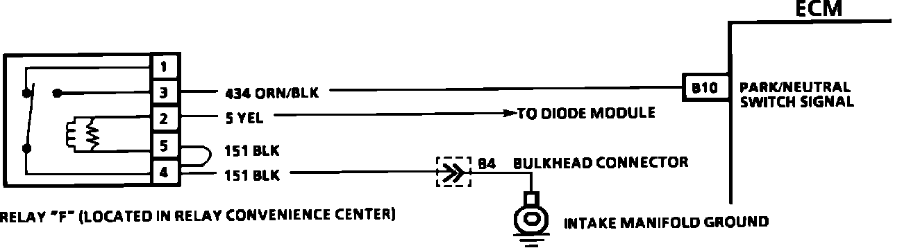 The PARK/NEUTRAL Switch contacts are closed to ground in park or neutral and open in drive ranges. The ECM supplies ignition voltage through a current limiting resistor to circuit 434, and senses a closed switch when the voltage on circuit 434 drops to less than one volt. The ECM uses the P/N signal as one of the inputs to control idle air, vehicle speed sensor diagnostics, and exhaust gas recirculation. If circuit 434 indicates a grounded P/N switch, while in the drive range, the EGR would be inoperative and engine detonation may result. If circuit 434 always indicates drive (open), a drop in idle speed may exist when the gear selector is moved into the drive range.