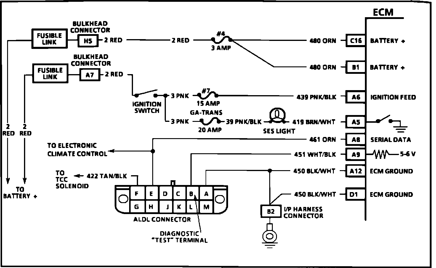 3. This checks the ability of the ECM to control the "SES" light. With the diagnostic terminal grounded, the "SES" light should flash a Code 12 three times, followed by any trouble Codes stored in memory.