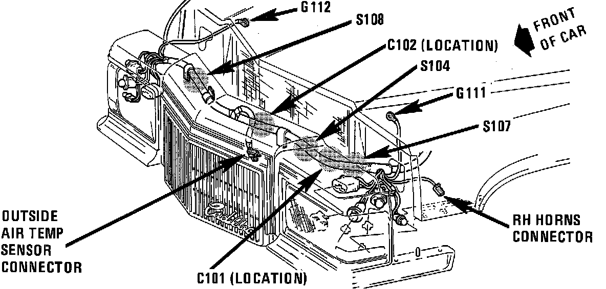 Component Location View. Front of Car: