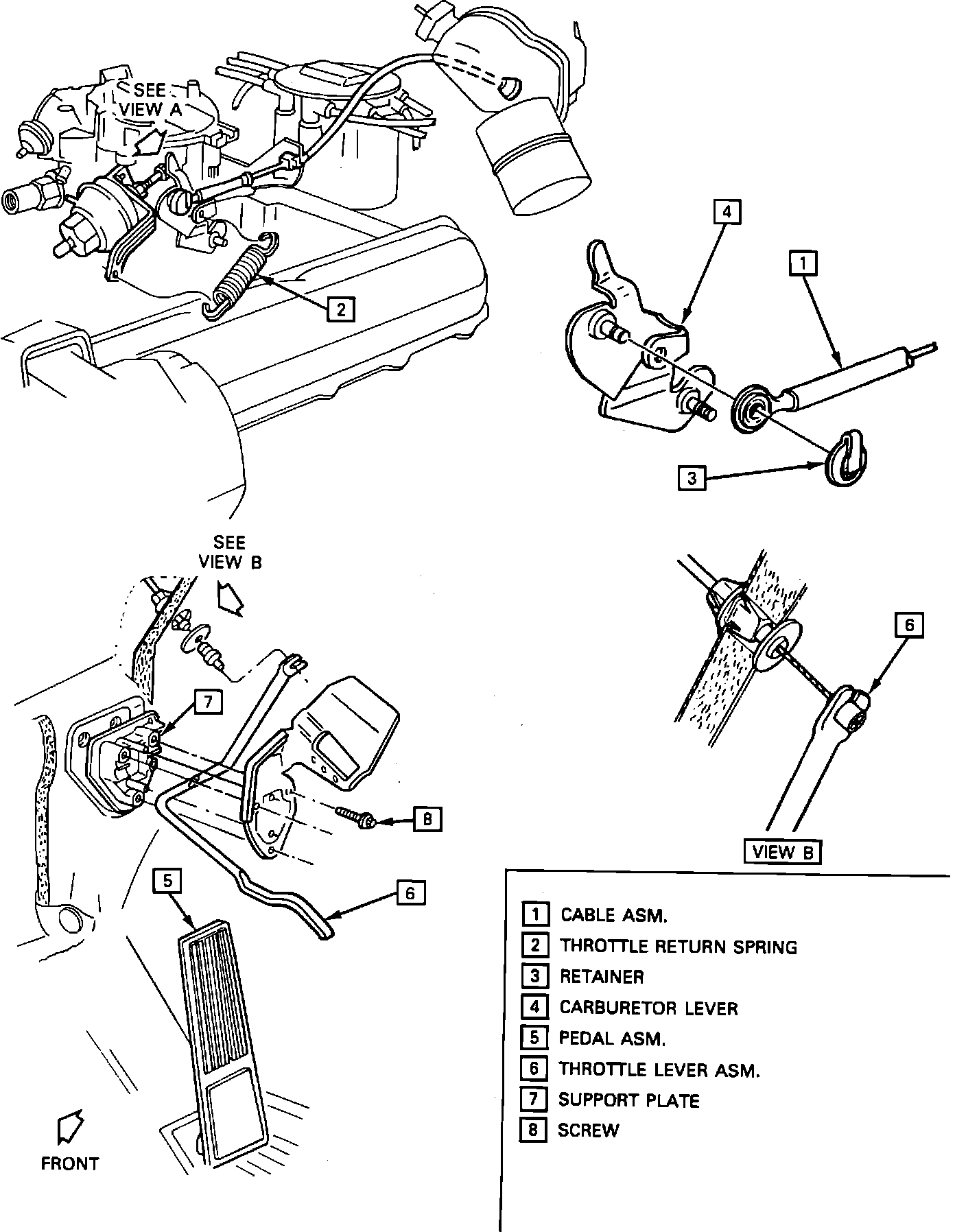 ^ After securing all components of the accelerator linkage, the linkage must operate freely without binding between full closed throttle and full wide open throttle.