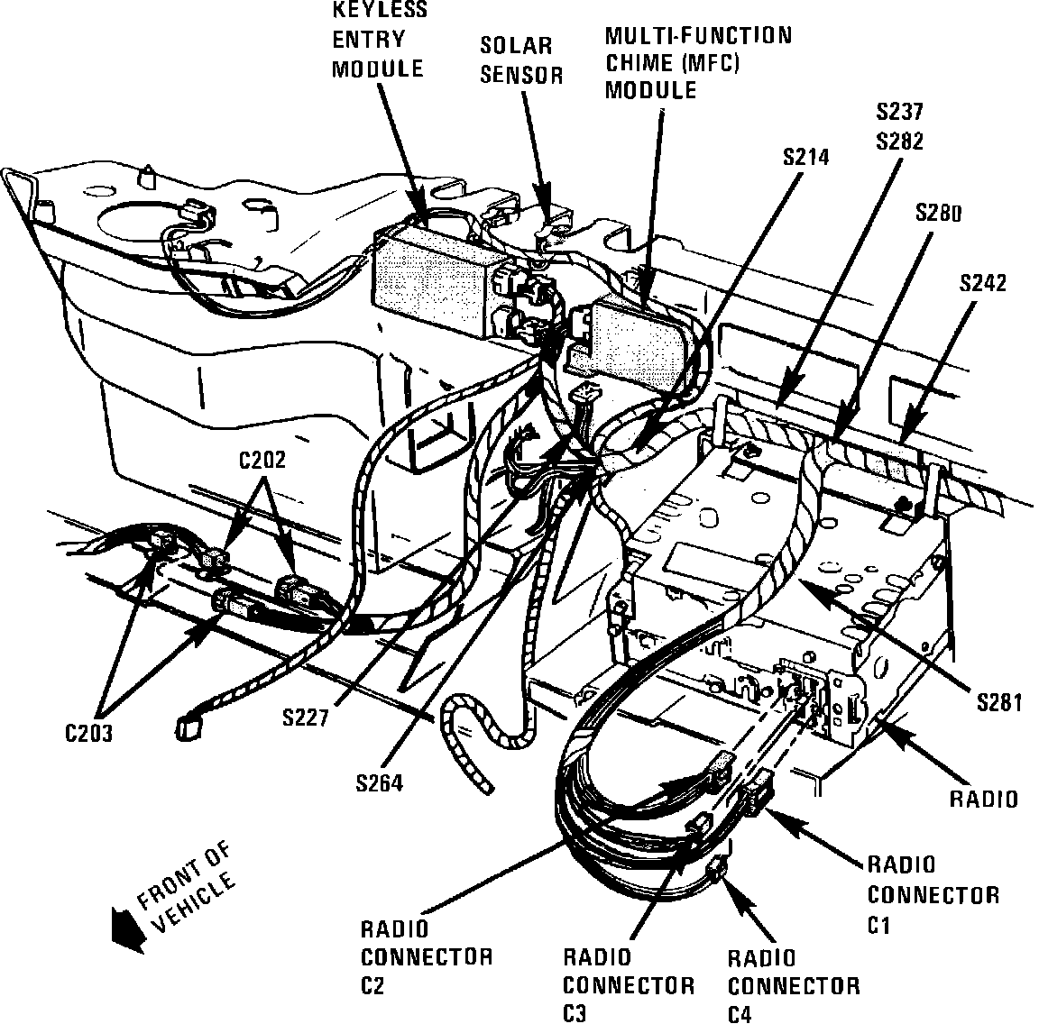 The remote keyless entry module is located behind the R/H side of the I/P, above the glove box.