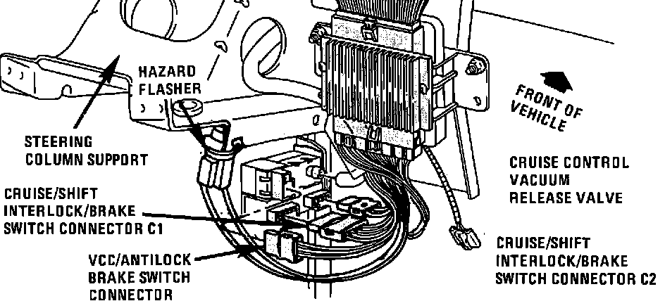 Behind LH Side Of I/P, Top Of Brake Pedal Support: