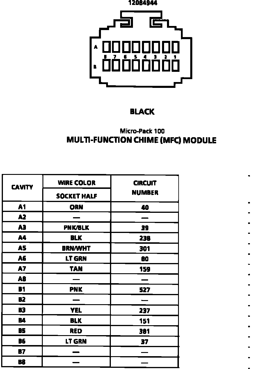 Multi-Function Chime (MFC) Module Connector Face: