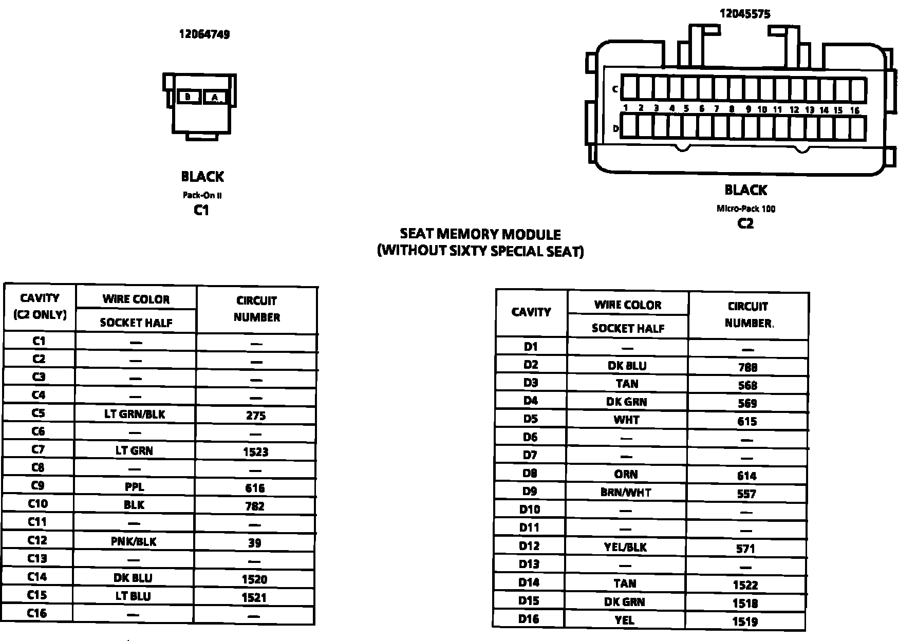 Seat Memory Module (w/o Sixty Special Seat) Connector Face: