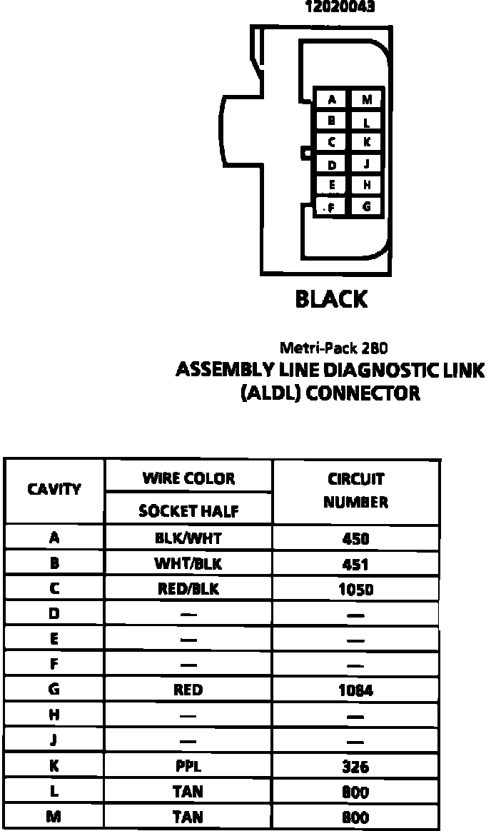 Assembly Line Diagnostic Link (ALDL) Connector Face: