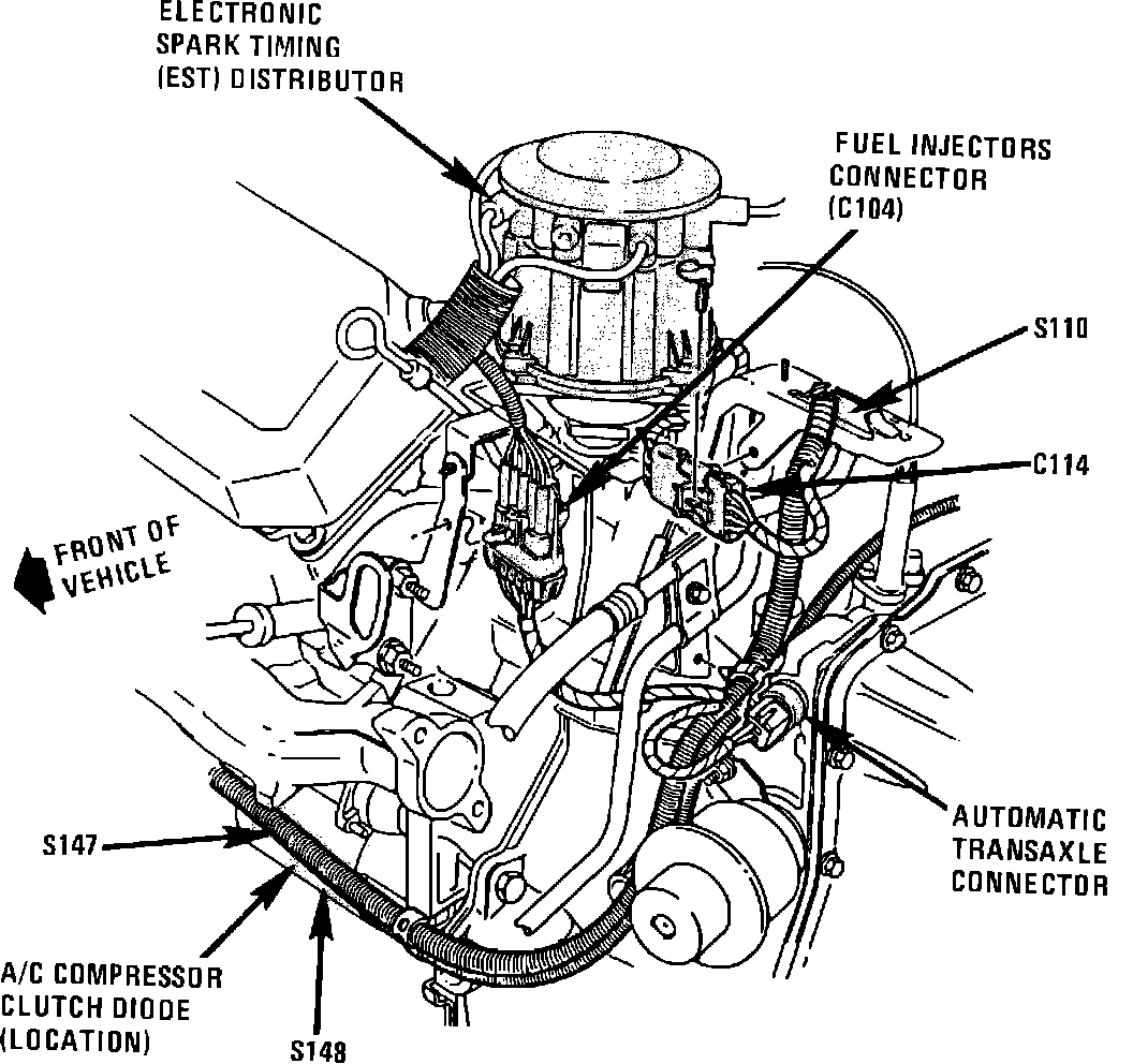 Top LH front of engine