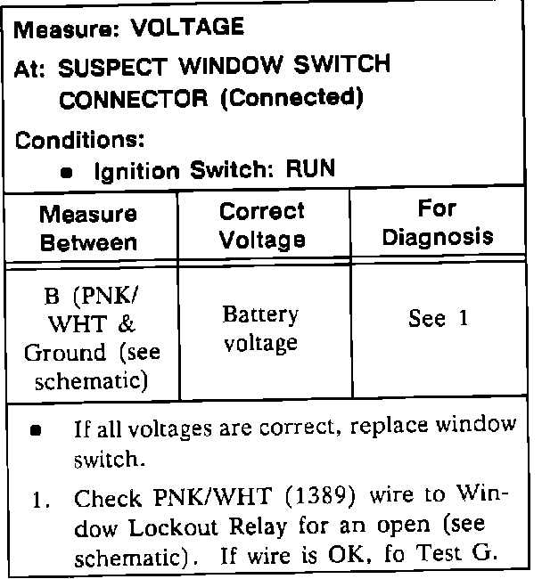 Test F: Window Lockout Relay Test: