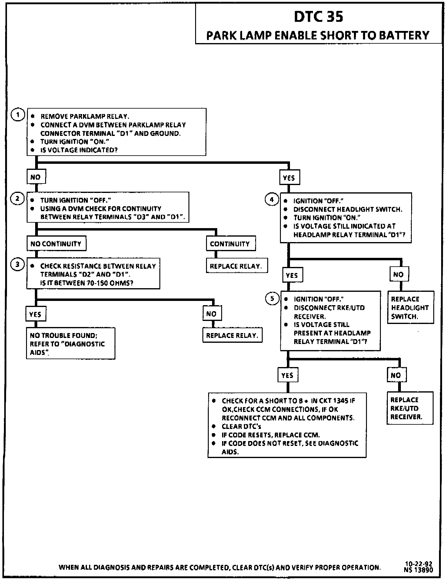 Do not turn the park lamp switch "ON" (headlight switch), if DTC 35 is current The headlight switch may short out because of excessive current flow through CKT 1345.