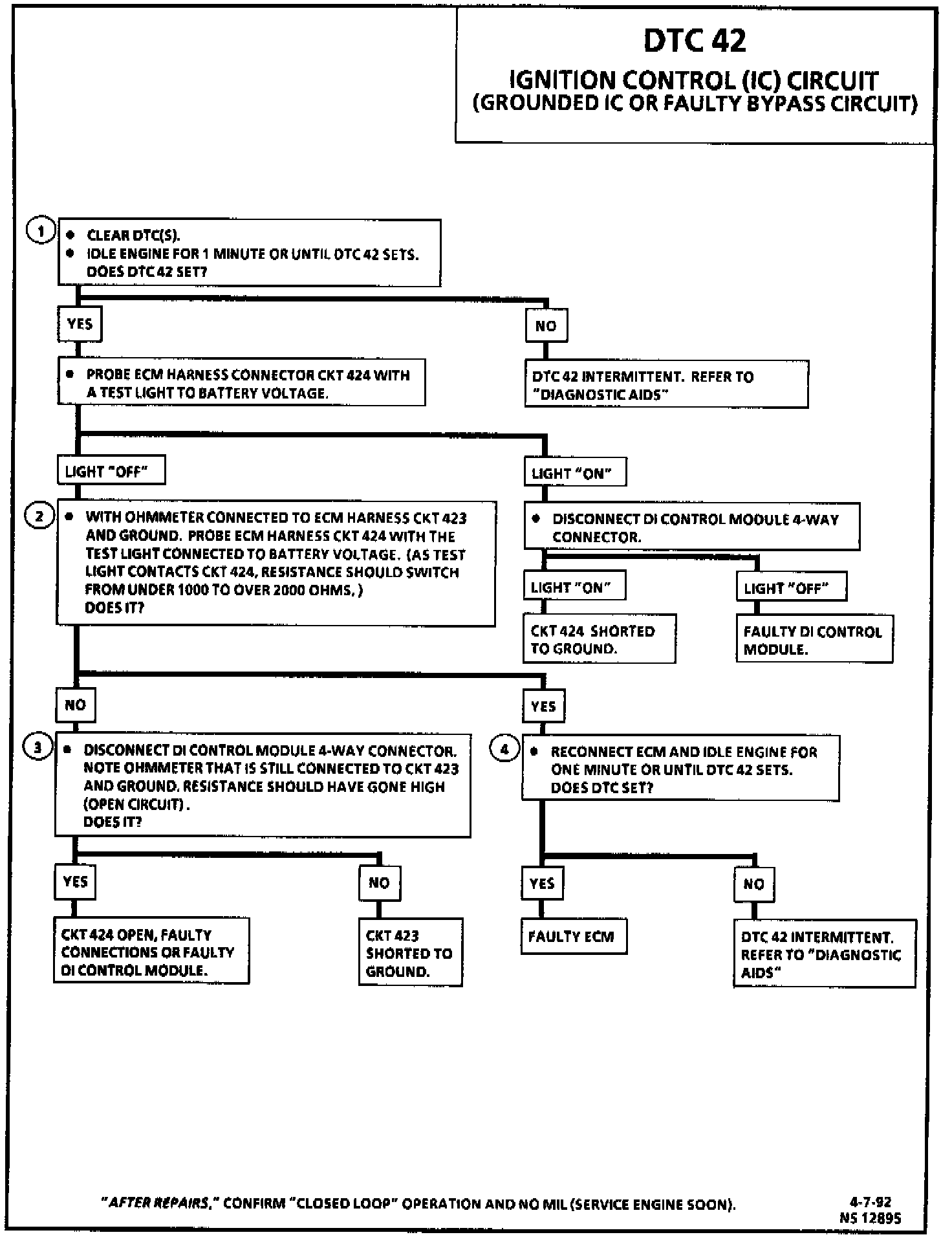 4. Confirms that DTC 42 is a faulty ECM and not an intermittent in CKT 423 or CKT 424.