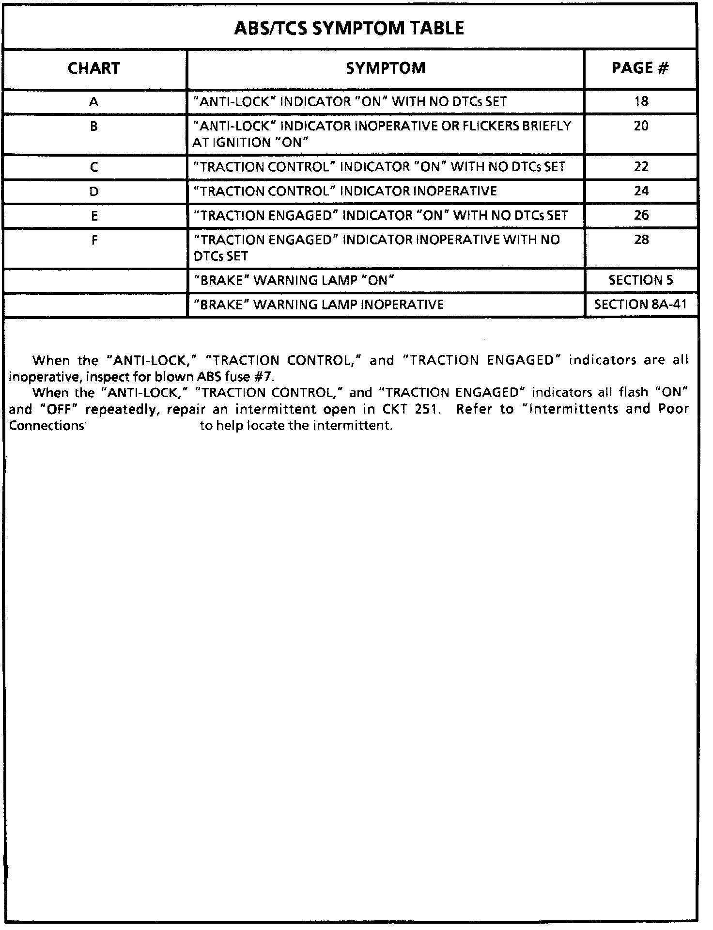 ABS/TCS Symptom Table