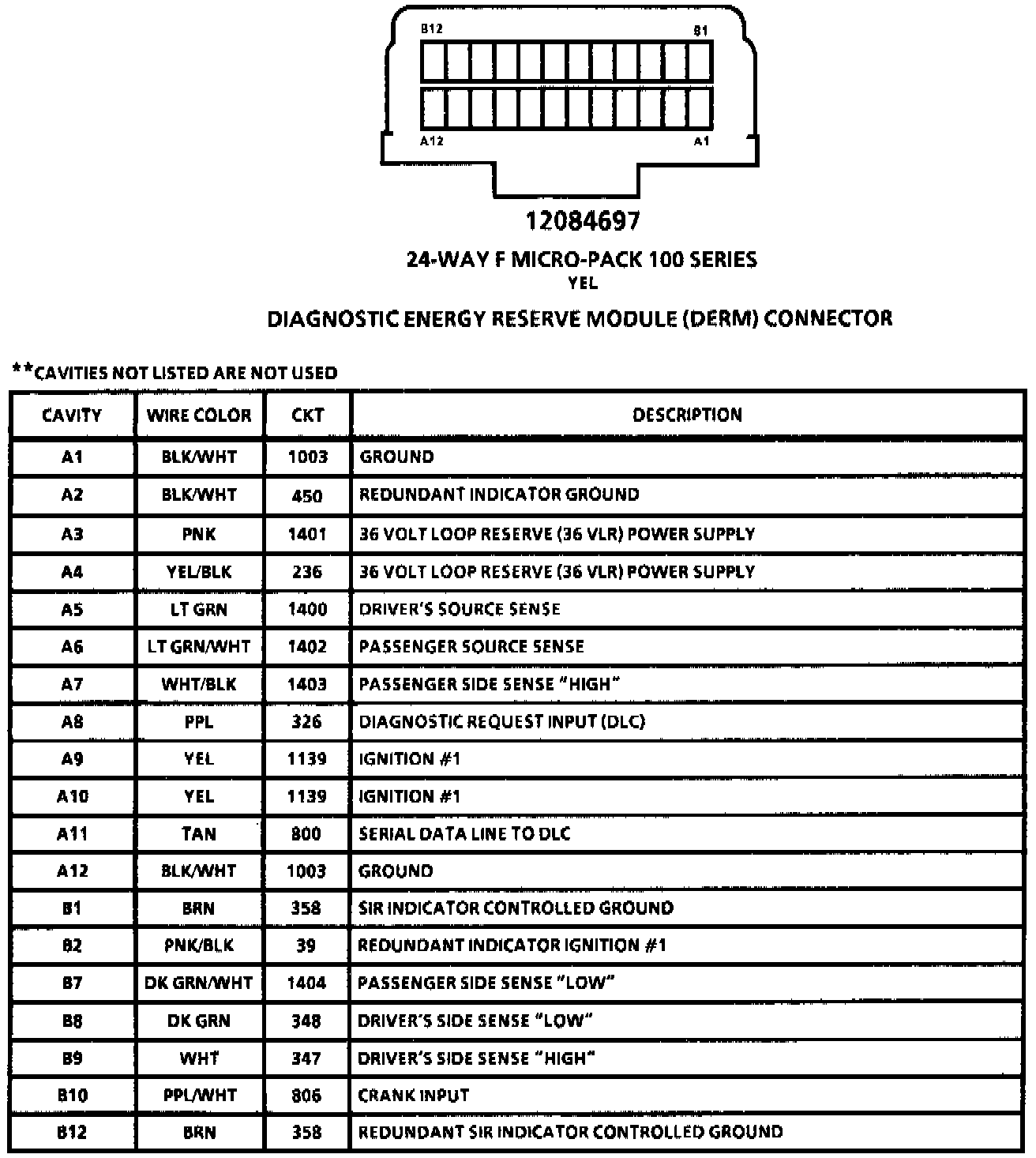 Supplemental Inflatable Restraint (SIR): Diagnostic Energy Reserve Module (DERM) Connector: