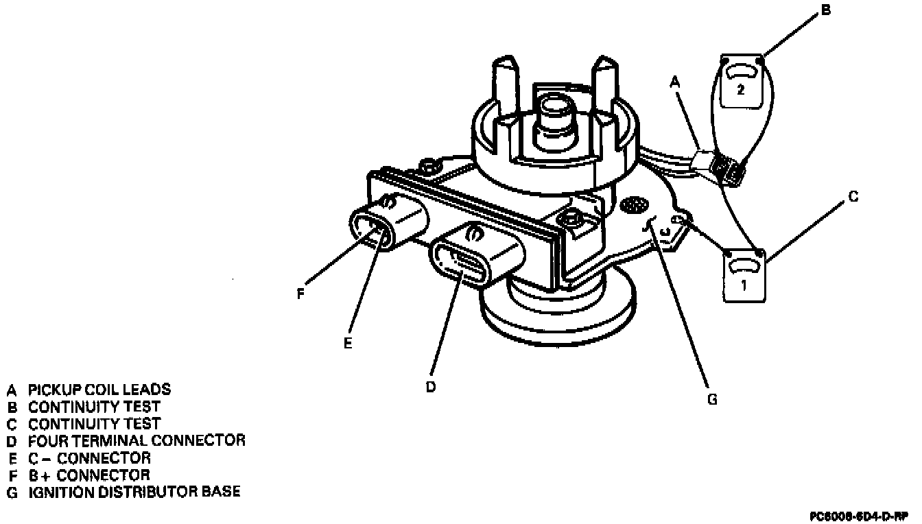 A. Connect ohmmeter to pickup coil lead terminal and to distributor base.