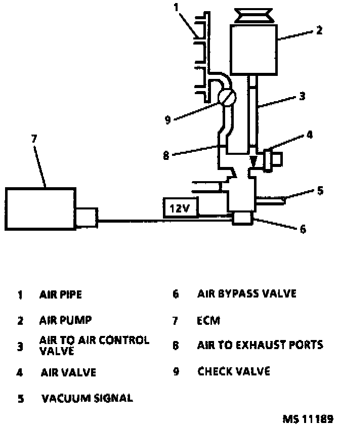 Air from the AIR pump is always shut "OFF" to the exhaust ports unless the ECM provides the ground for the bypass valve circuit (solenoid energized) which allows air flow to the exhaust ports.