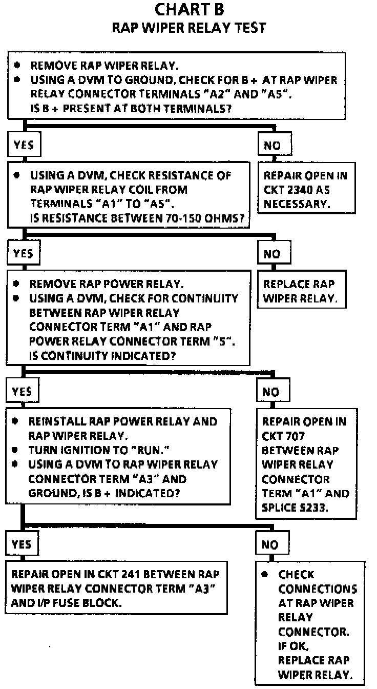 Retained Accessory Power (RAP) Chart B: Rap Wiper Relay Test:
