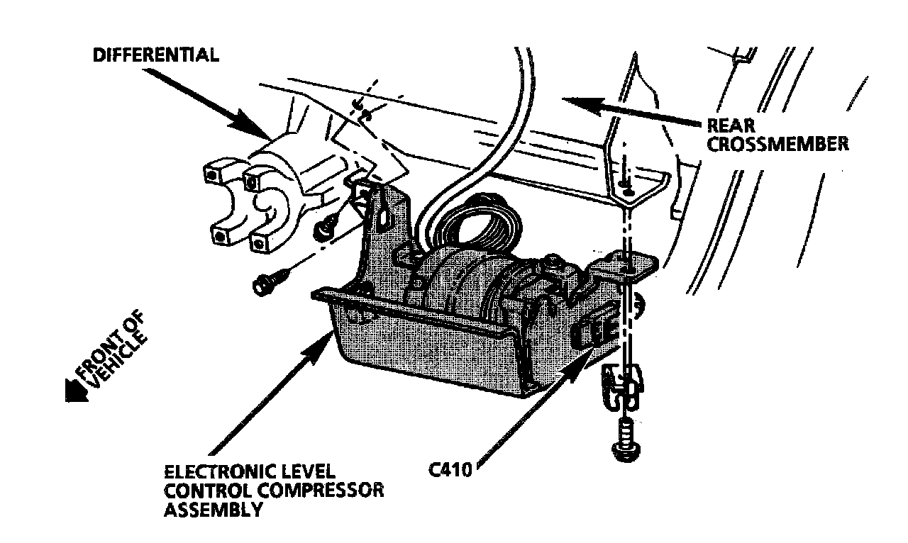 The Electronic Level Control (ELC) Relay is located inside the ELC Compressor Assembly.