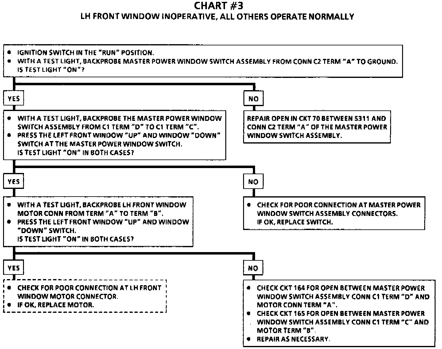 Chart 3 LH Front Window Inoperative, All Others Operate Normally: