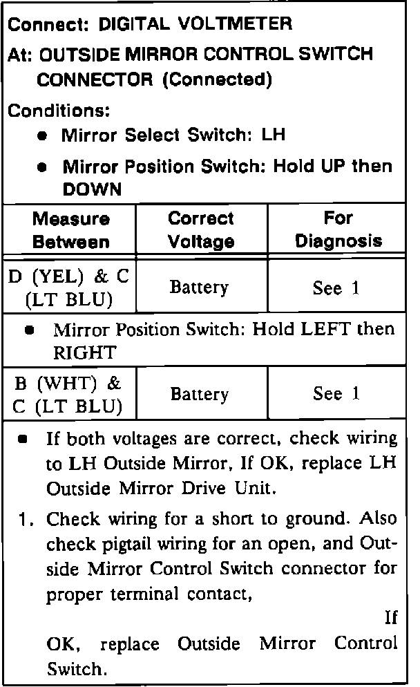 Test B: LH Mirror Does Not Operate In One Or More Modes: