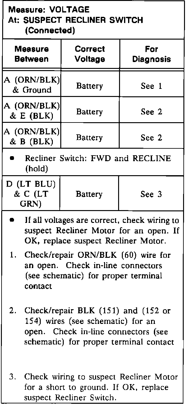 Test B: Seat Reclining Functions Operate For One Seat Only:
