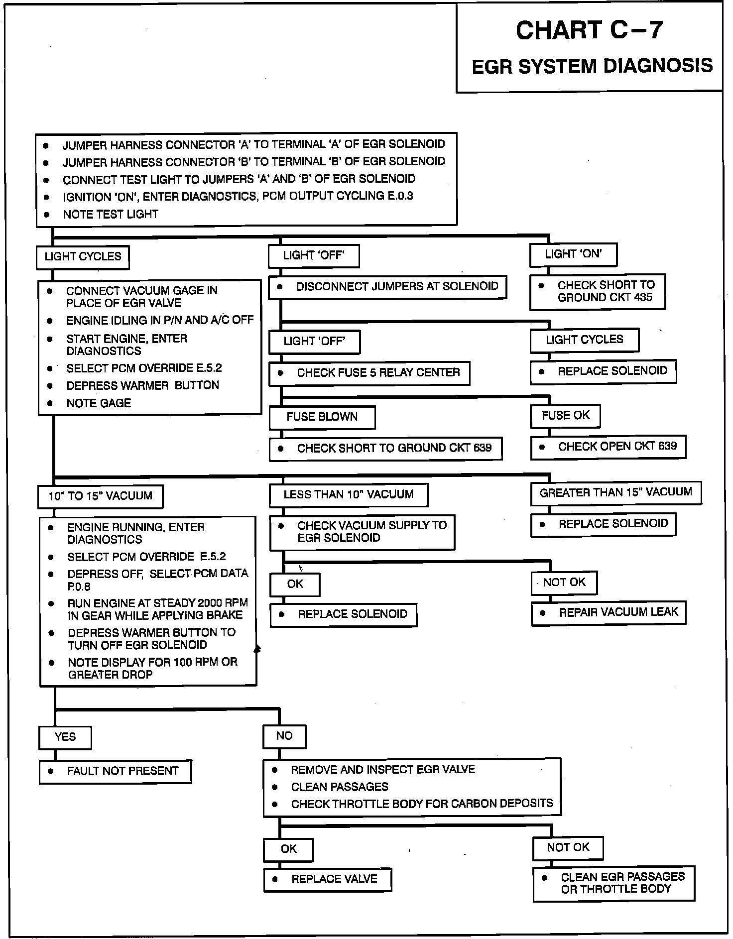 2. Connect a vacuum gauge to the EGR valve vacuum supply. There should be no vacuum with the engine idling. If there is, follow chart C-7 above.