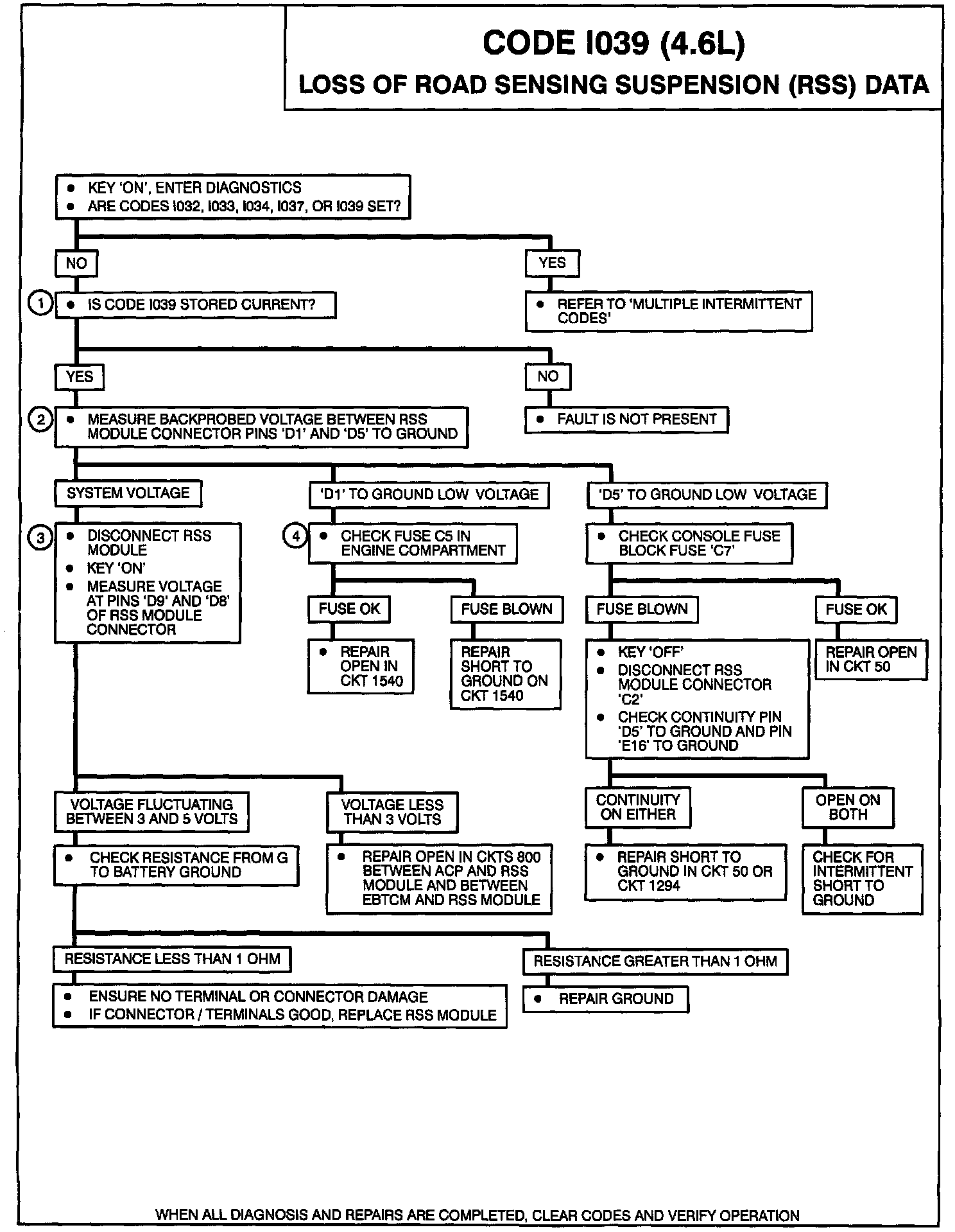 Code I039 will set if the ignition is on and the IPC is not able to exchange data with the Road Sensing Suspension (RSS) module (if any other communication codes are stored along with I039, see the chart of 'MULTIPLE INTERMITTENT CODES'). Multiple Data Communication Codes When this is the only communication code stored, the problem must be one of the following: