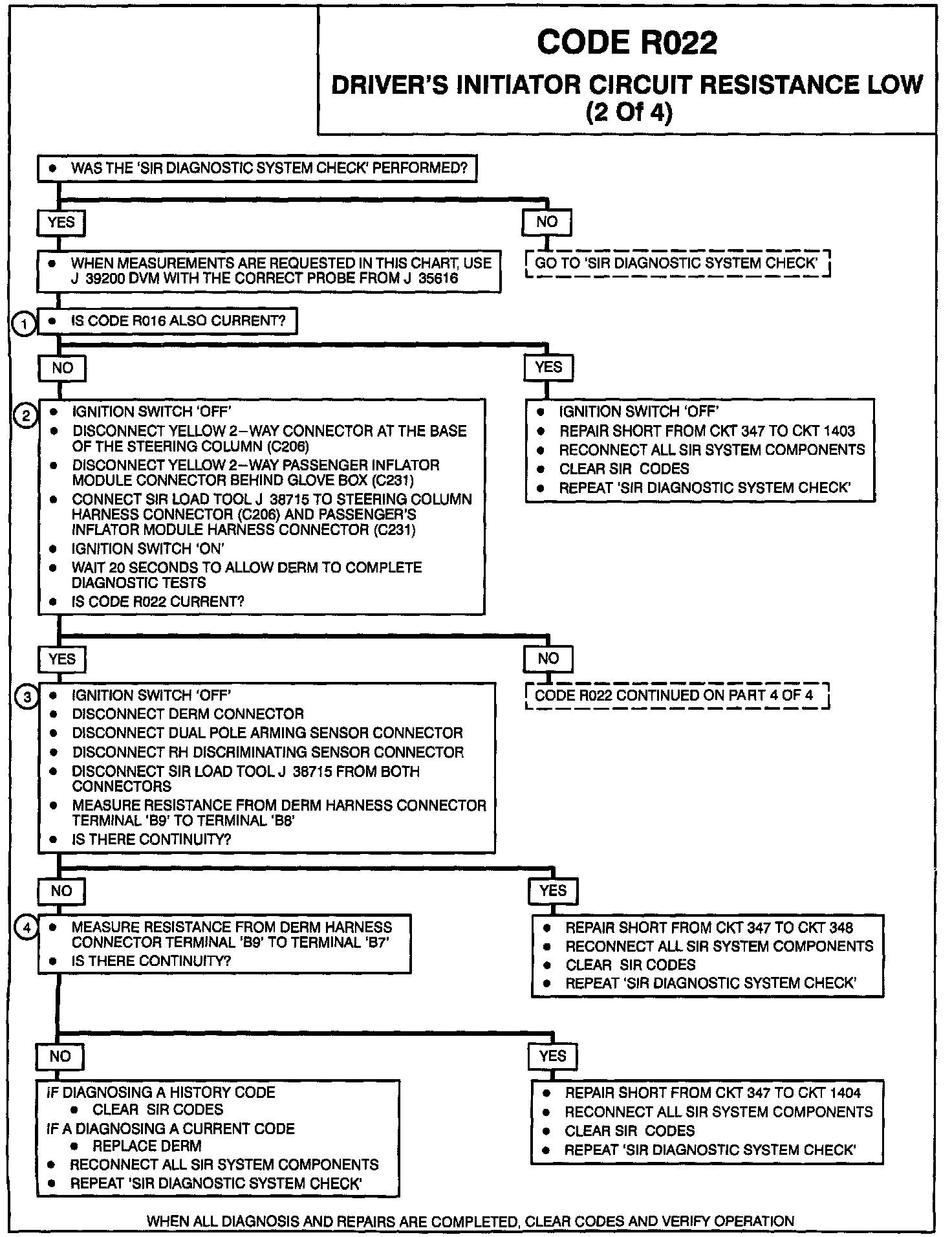 1. Code R016 and R022 set together when the 'PASSENGER'S SENSE HIGH', and 'DRIVER'S SENSE HIGH' circuits short together.