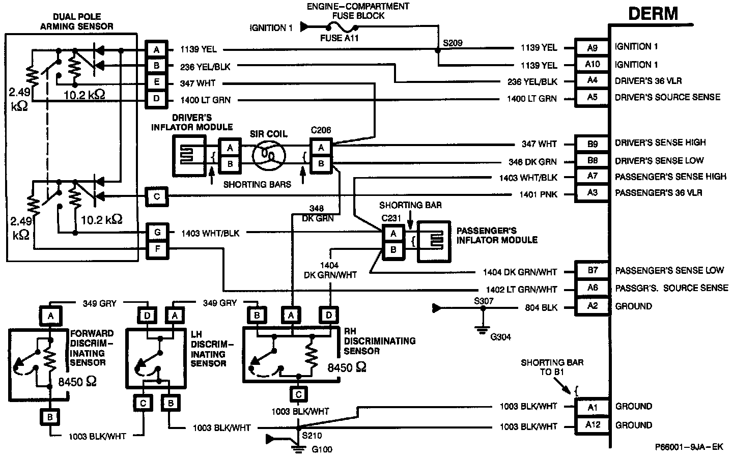 1. Checks for a short to ground in the "PASSENGER'S SOURCE SENSE" circuit between the DERM and Dual Pole Arming Sensor.