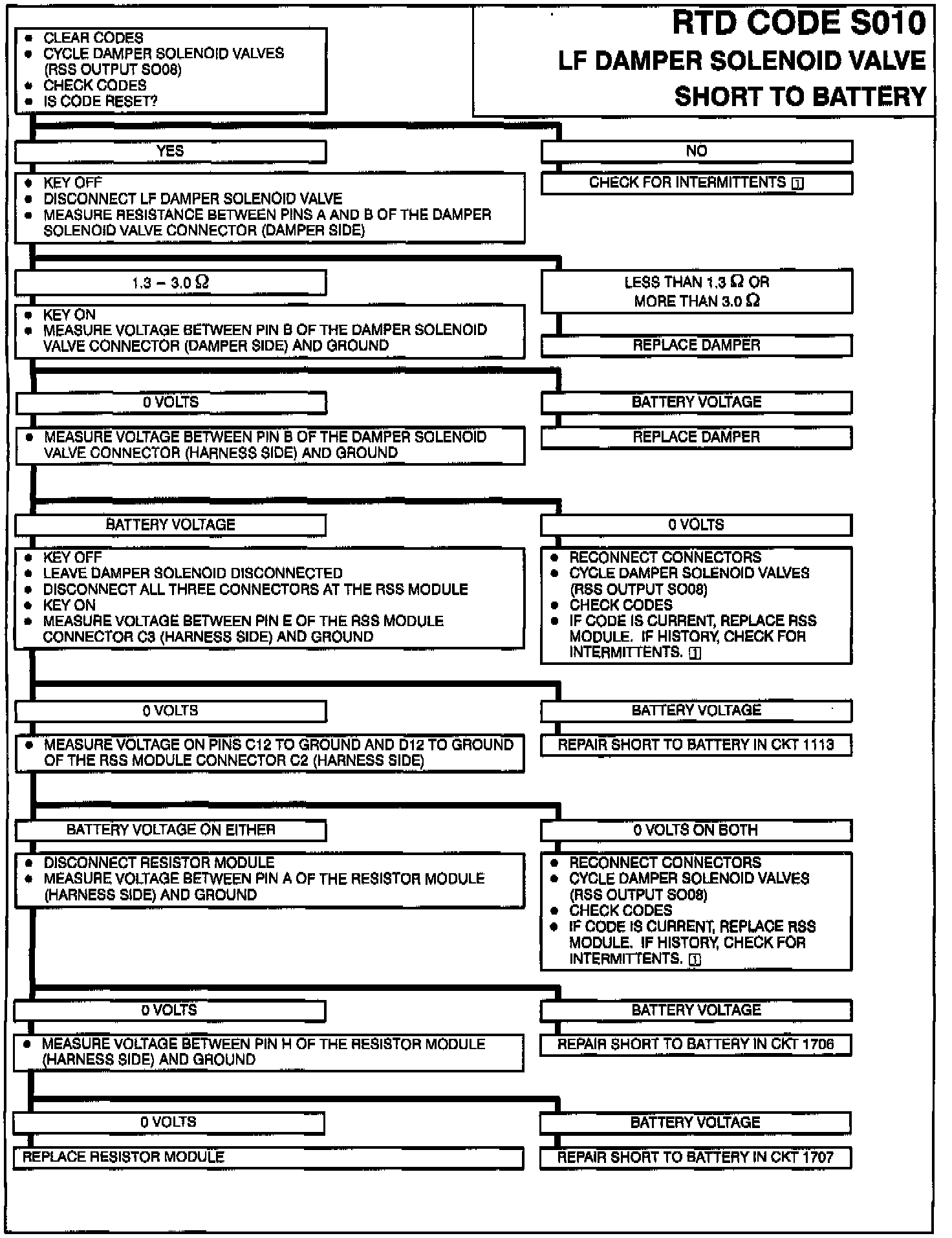 Set code, turn on "SERVICE RIDE CONTROL:" message, disable affected solenoid, all other dampers will operate normally.