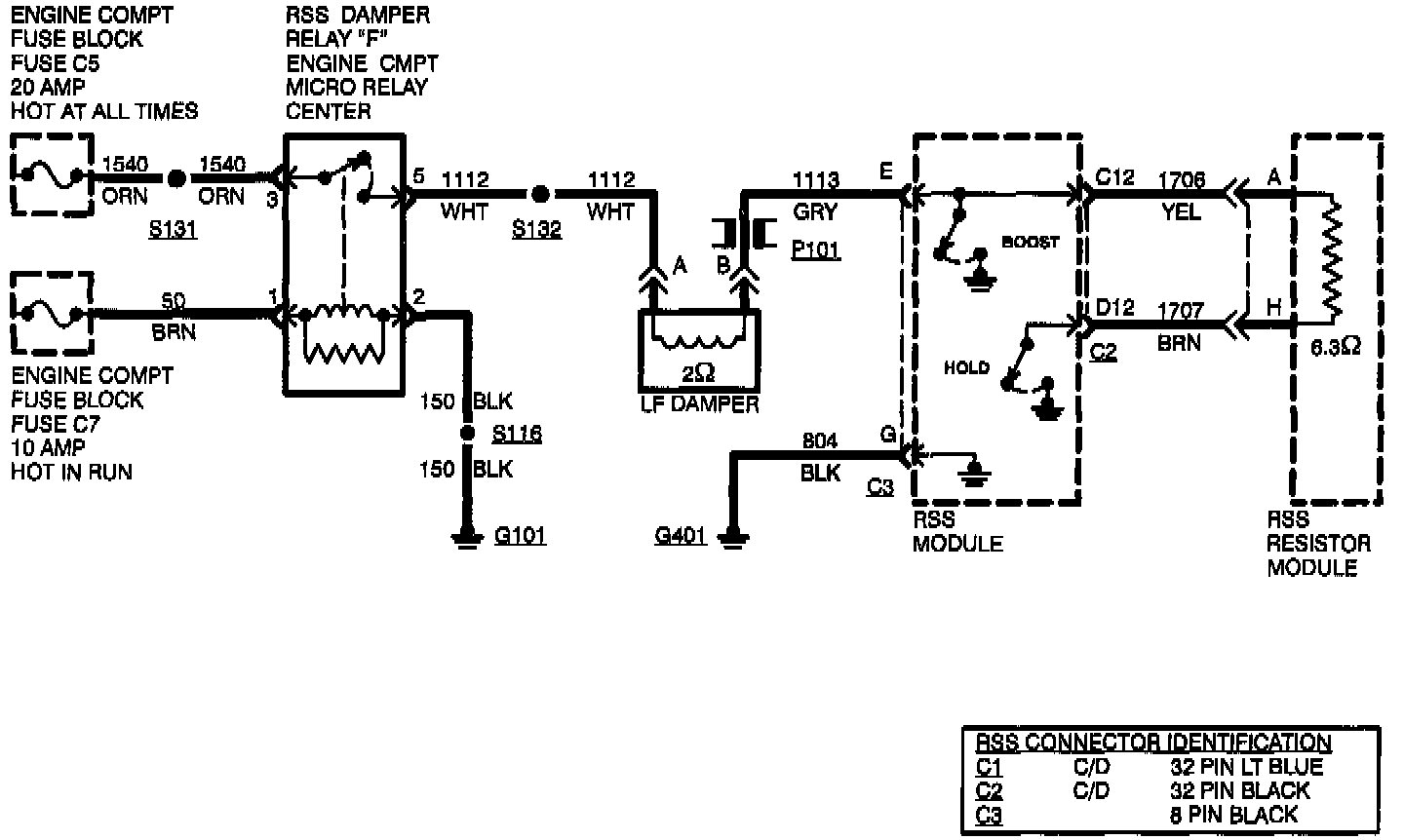 Solenoid errors are detected via the boost and hold feedback signals. The RSS module continually monitors these signals and compares the feedback to the requested boost or hold signal. This code will set when the boost feedback signal does not match the commanded signal.