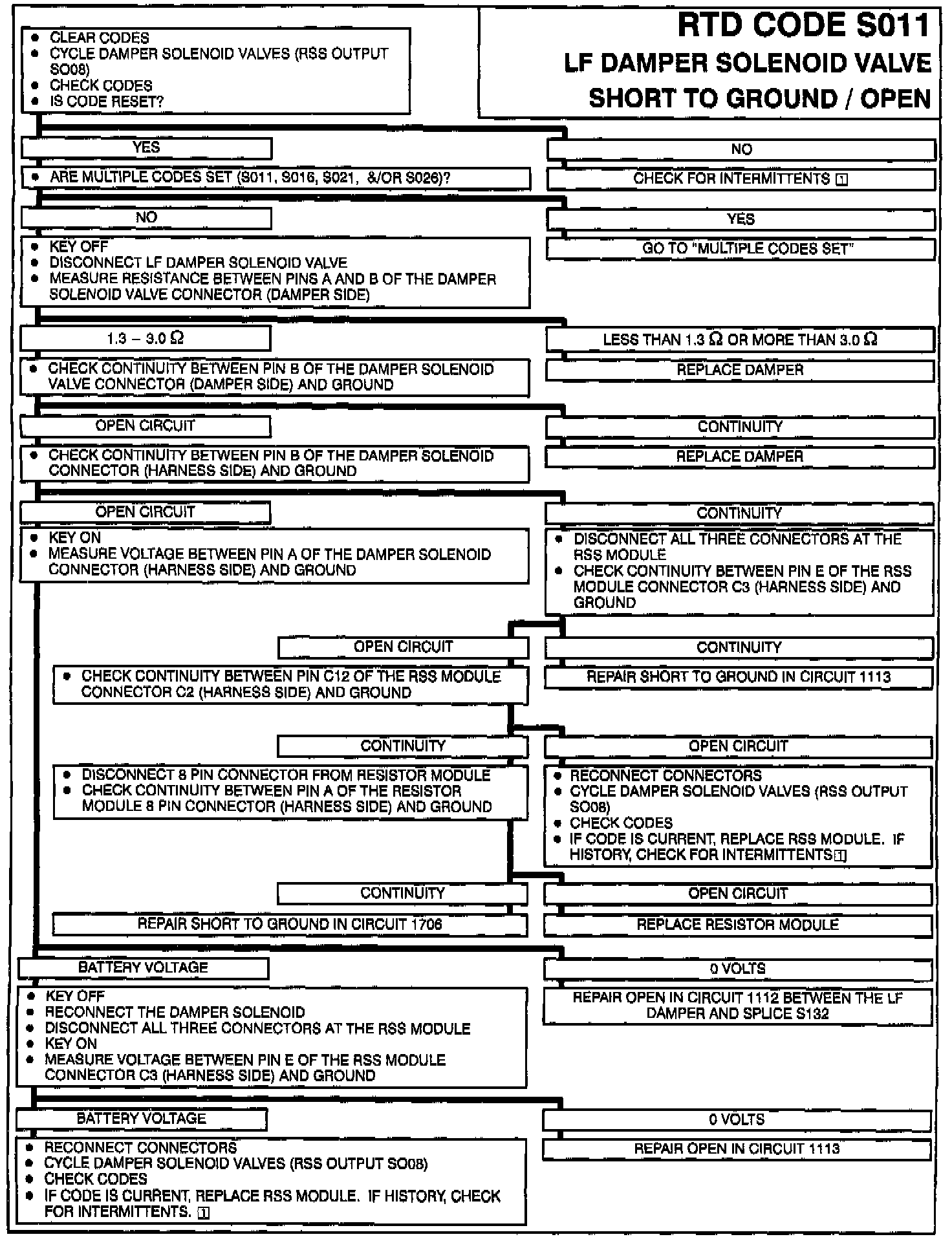 Set code, turn on "SERVICE RIDE CONTROL" message, disable affected solenoid, all other dampers will operate normally.