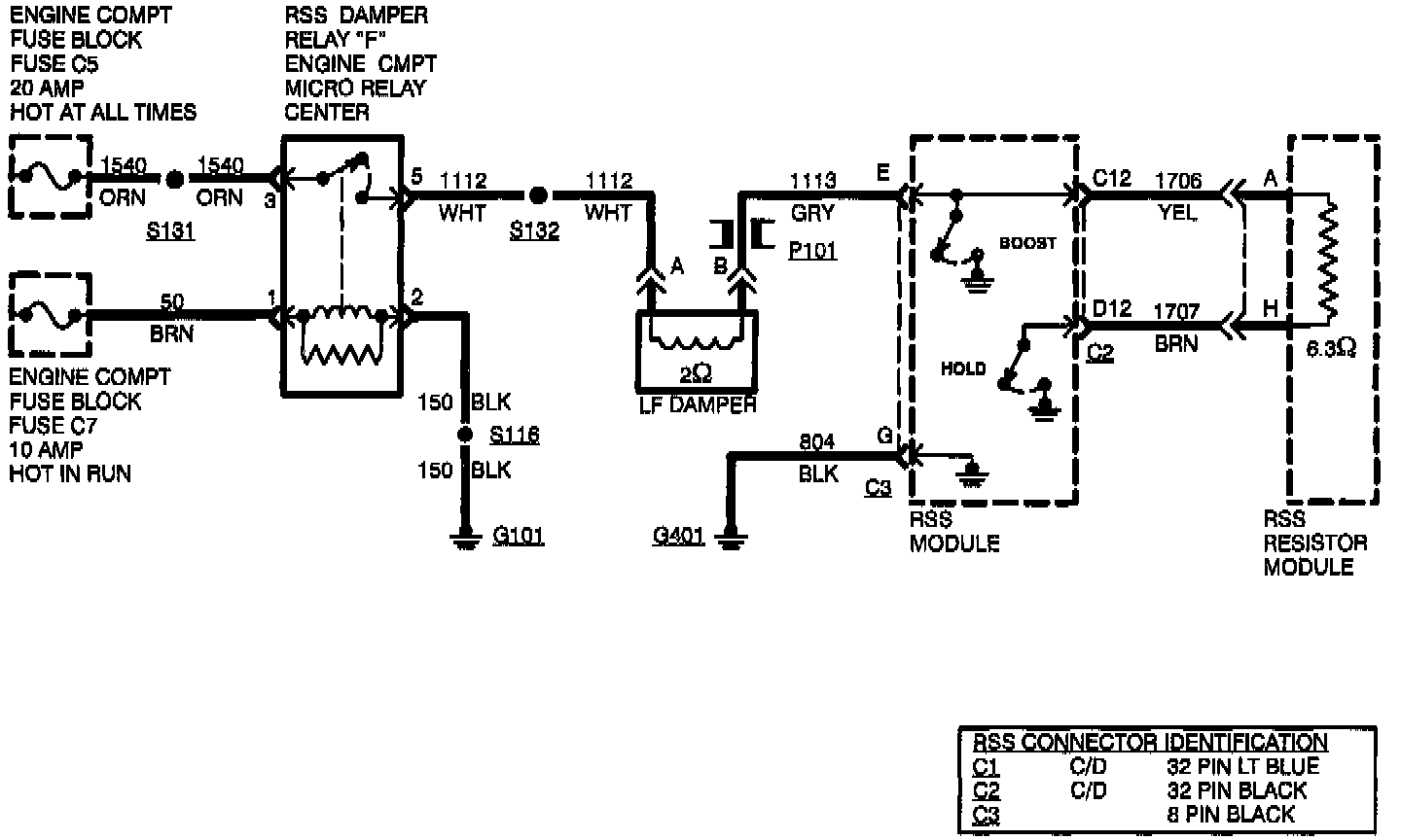 Solenoid errors are detected via the boost and hold feedback signals. The RSS module continually monitors these signals and compares the feedback to the requested boost or hold signal. This code will set when the boost feedback signal does not match the commanded signal.
