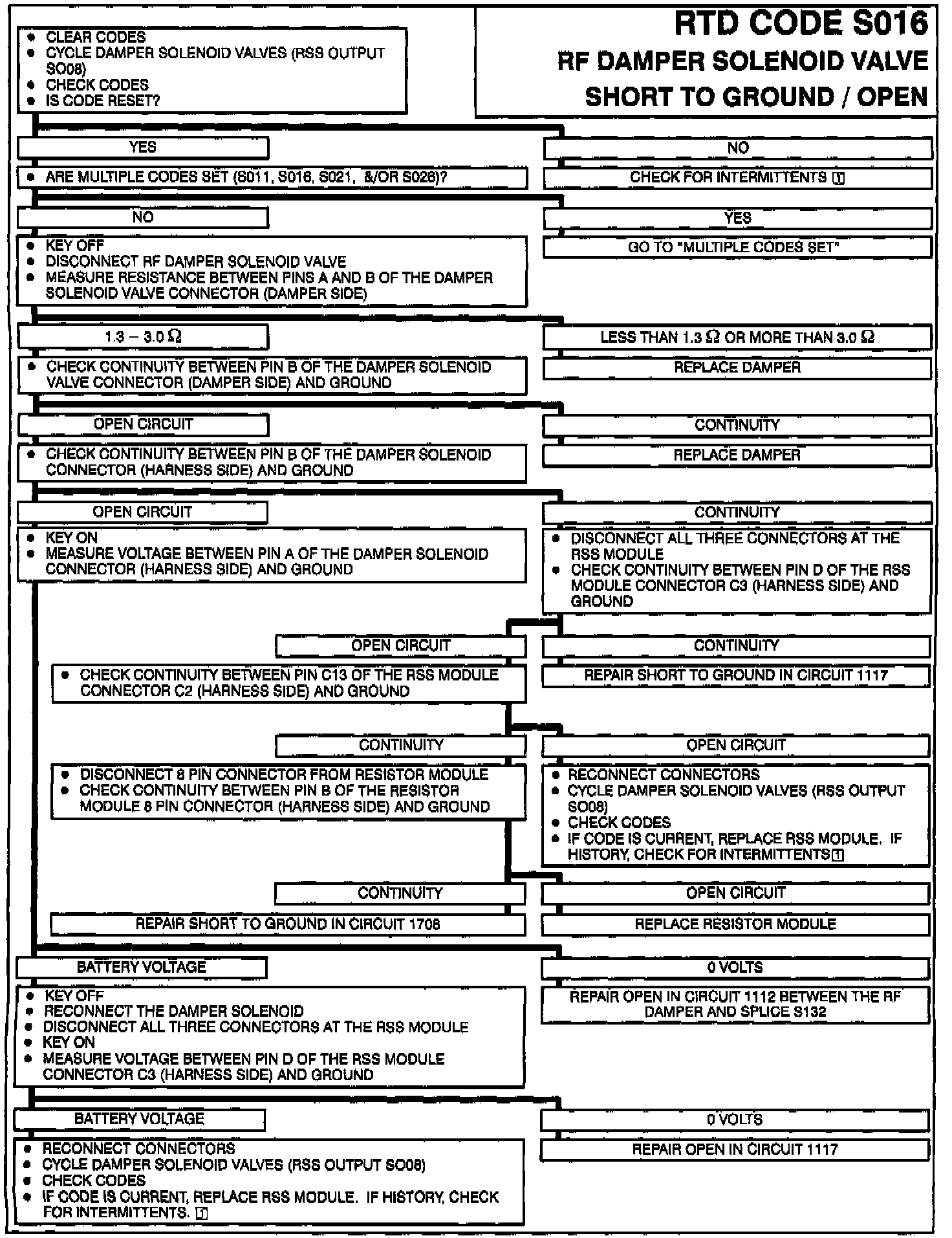 Solenoid errors are detected via the boost and hold feedback signals. The RSS module continually monitors these signals and compares the feedback to the requested boost or hold signal. This code will set when the boost feedback signal does not match the commanded signal.
