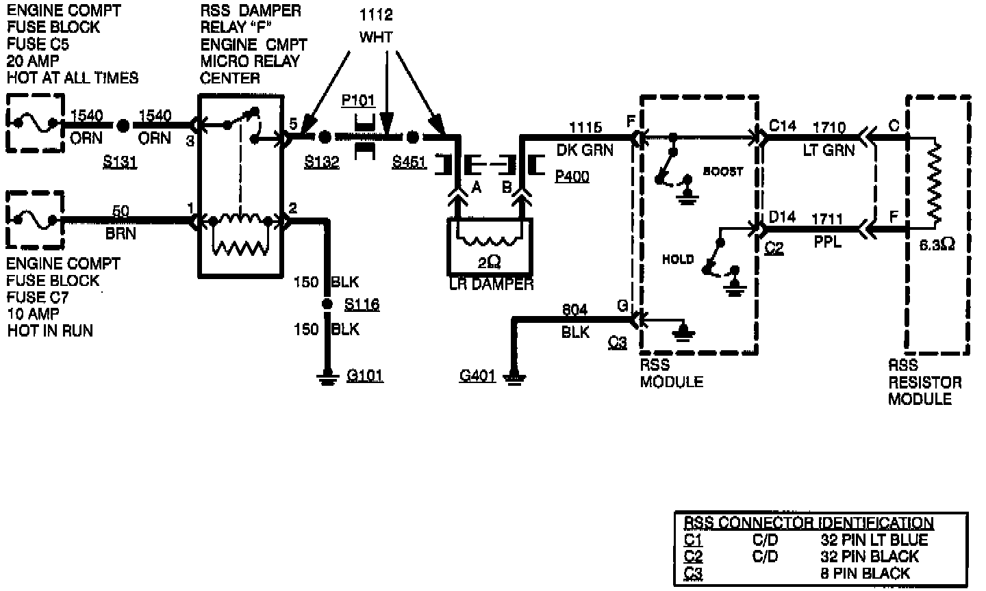 Solenoid errors are detected via the boost and hold feedback signals. The RSS module continually monitors these signals and compares the feedback to the requested boost or hold signal. This code will set when the boost feedback signal does not match the commanded signal.