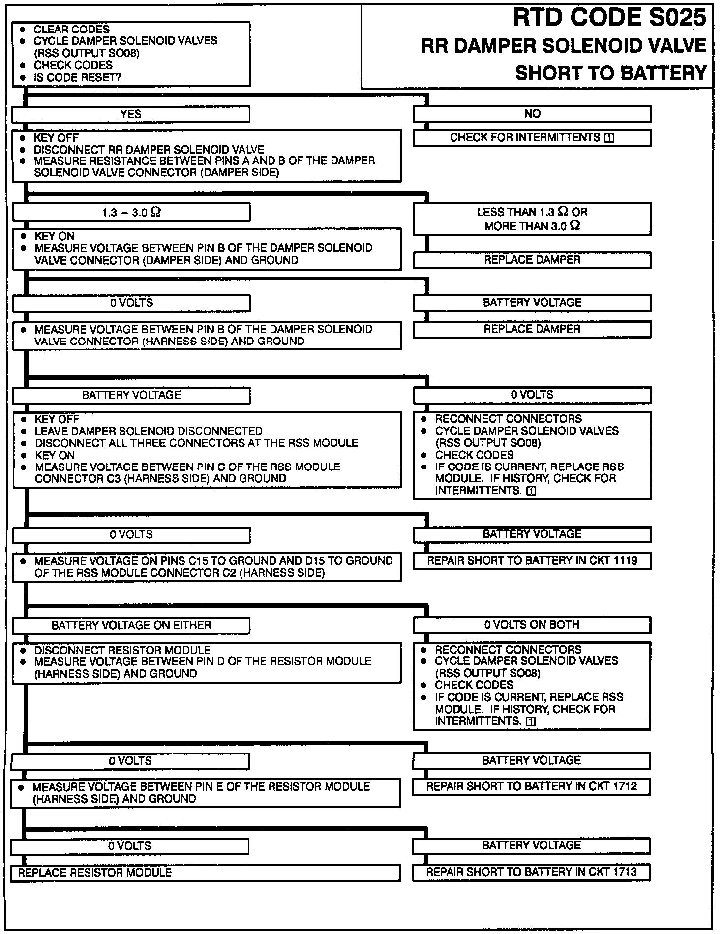 Set code, turn on "SERVICE RIDE CONTROL" message, disable affected solenoid, all other dampers will operate normally.