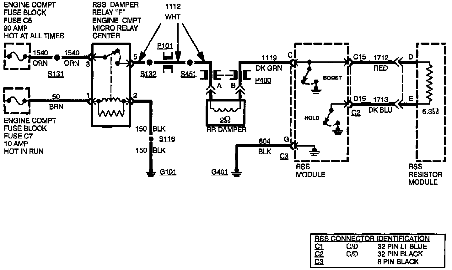 Solenoid errors are detected via the boost and hold feedback signals. The RSS module continually monitors these signals and compares the feedback to the requested boost or hold signal. This code will set when the boost feedback signal does not match the commanded signal.