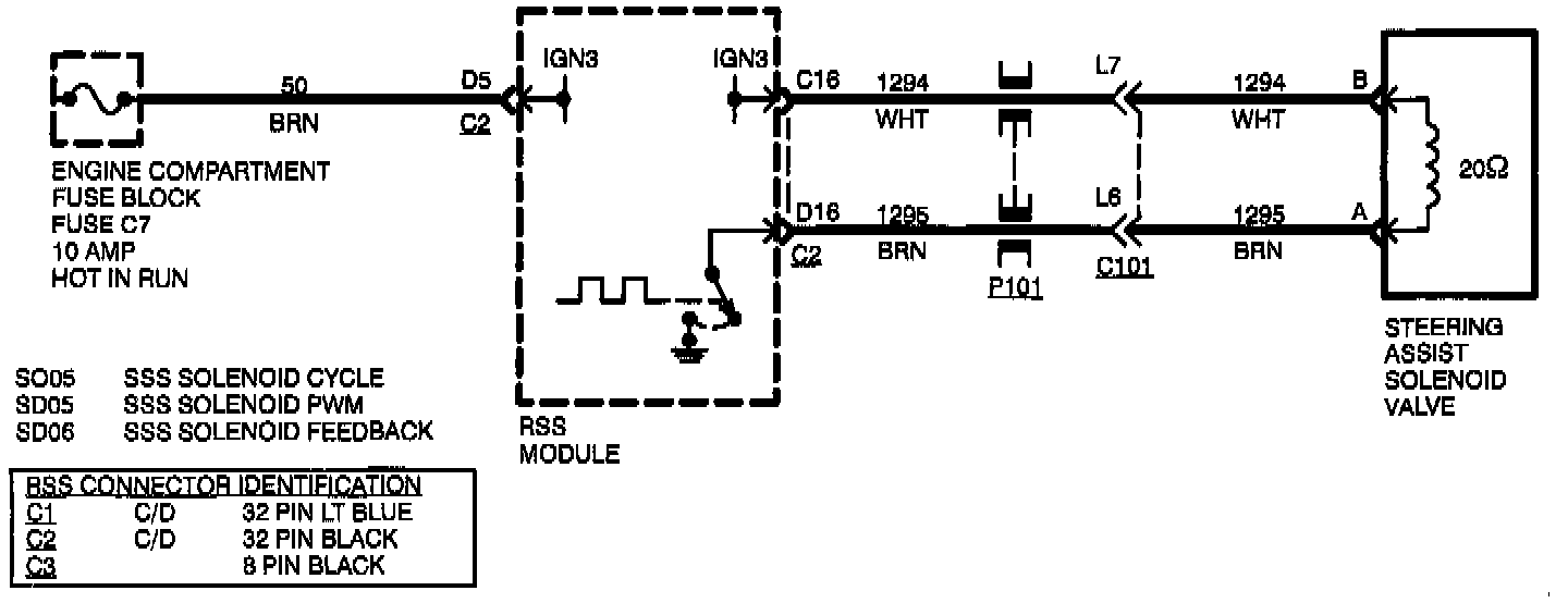 4. If SSS solenoid (circuit 1294) is shorted to ground, ignition fuse to RSS module will blow and no codes will be set.