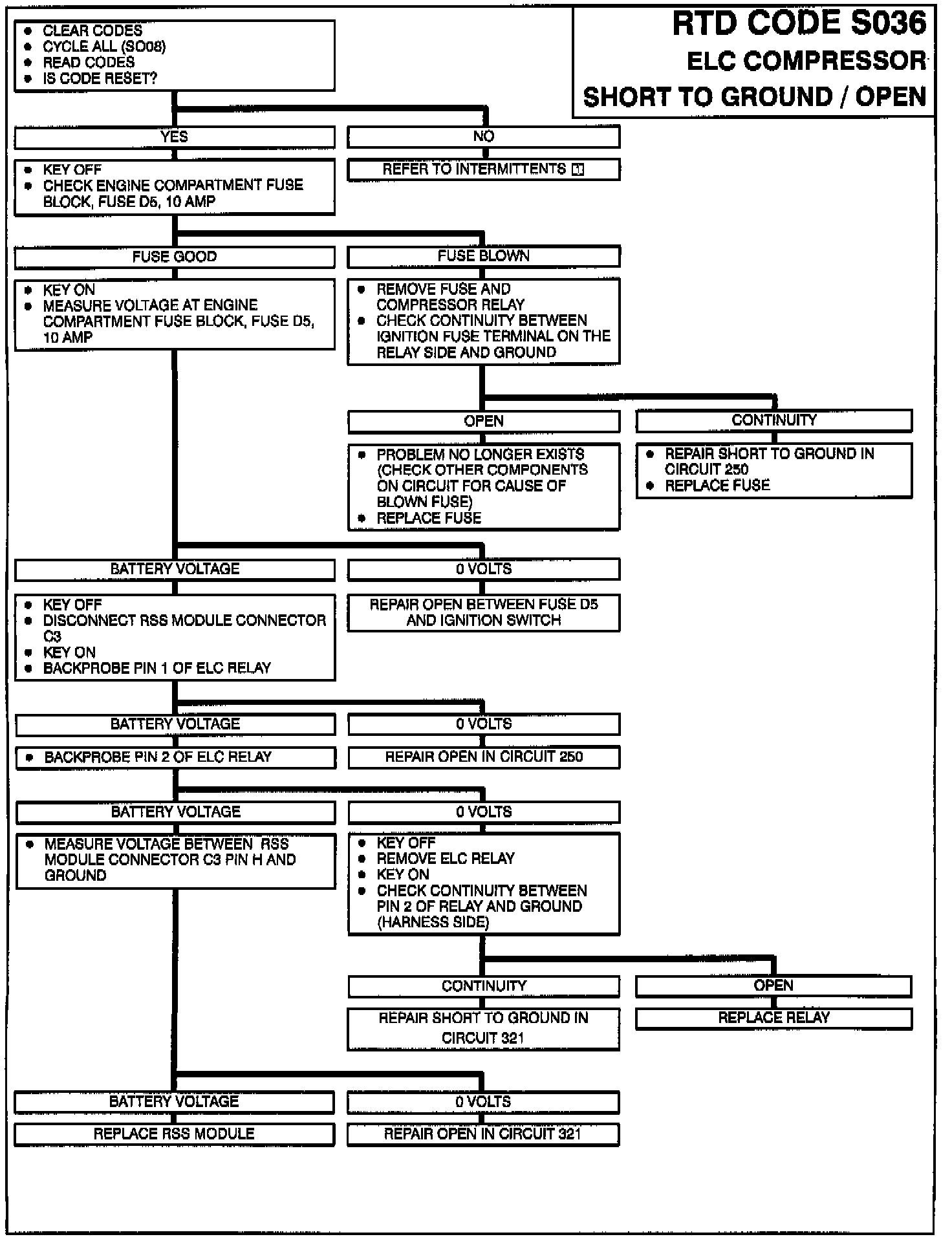 The RSS module monitors the compressor relay circuit during commanded off states. The module expects to see the circuit high.