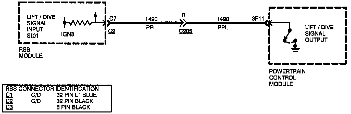 The RSS module monitors the lift / dive signal which is pulled low then high by the PCM after vehicle crank.