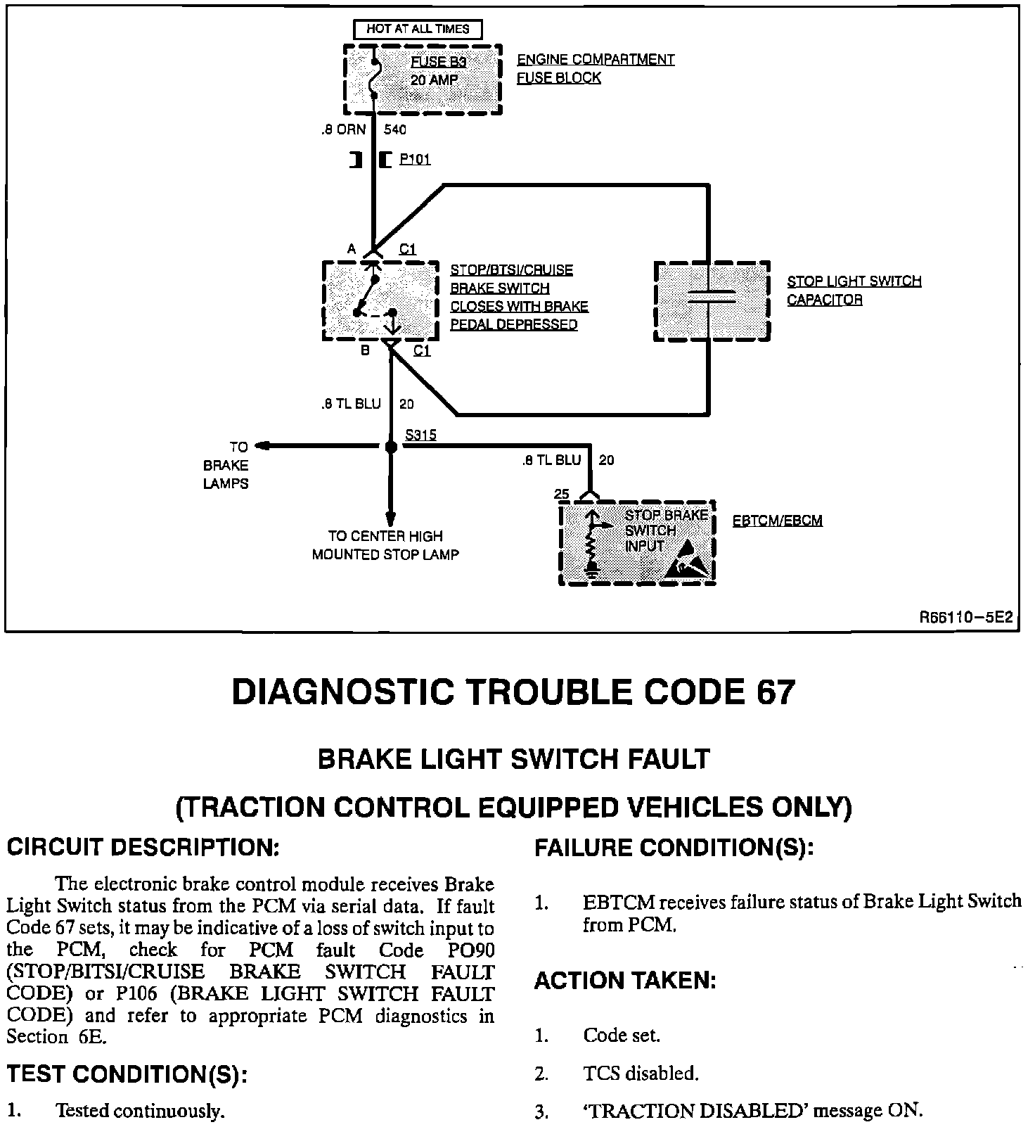 Code 67, Brake Light Switch Fault: