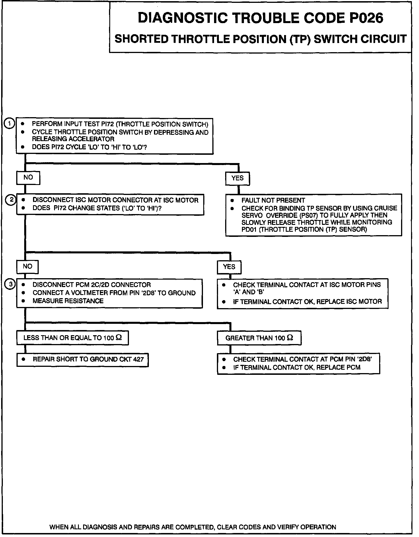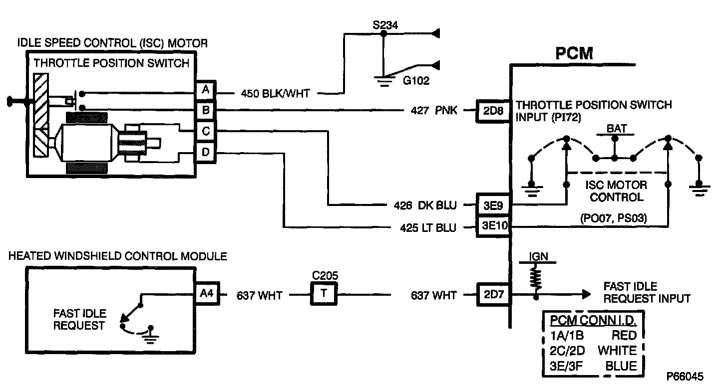 2. If PI72 changes to 'HI' when the ISC motor is disconnected, the fault is with the ISC motor. If PI72 still stays 'LO', check CKT 427 for a short to ground.