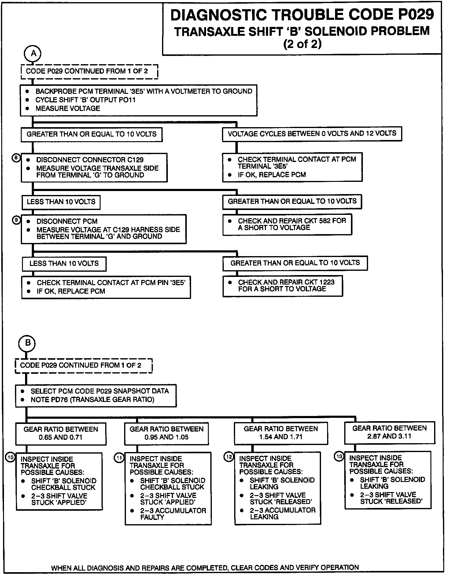 2. Checking if Shift 'B' solenoid is 'HI' when it should be 'LO' or if it is 'LO' when it should be 'HI'.