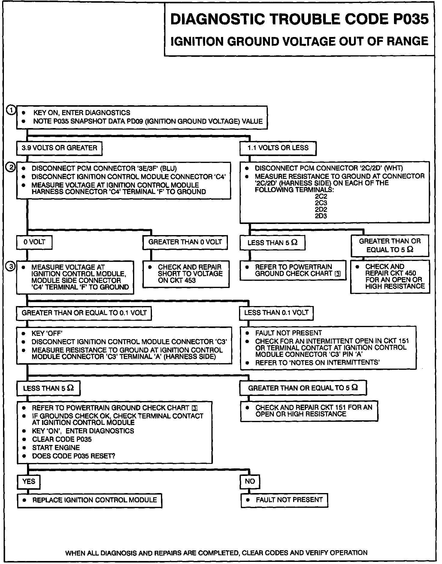 1. If the value of PD09 is 1.1 volt or less, this means that the PCM ground voltage is floating high causing P035 to set.