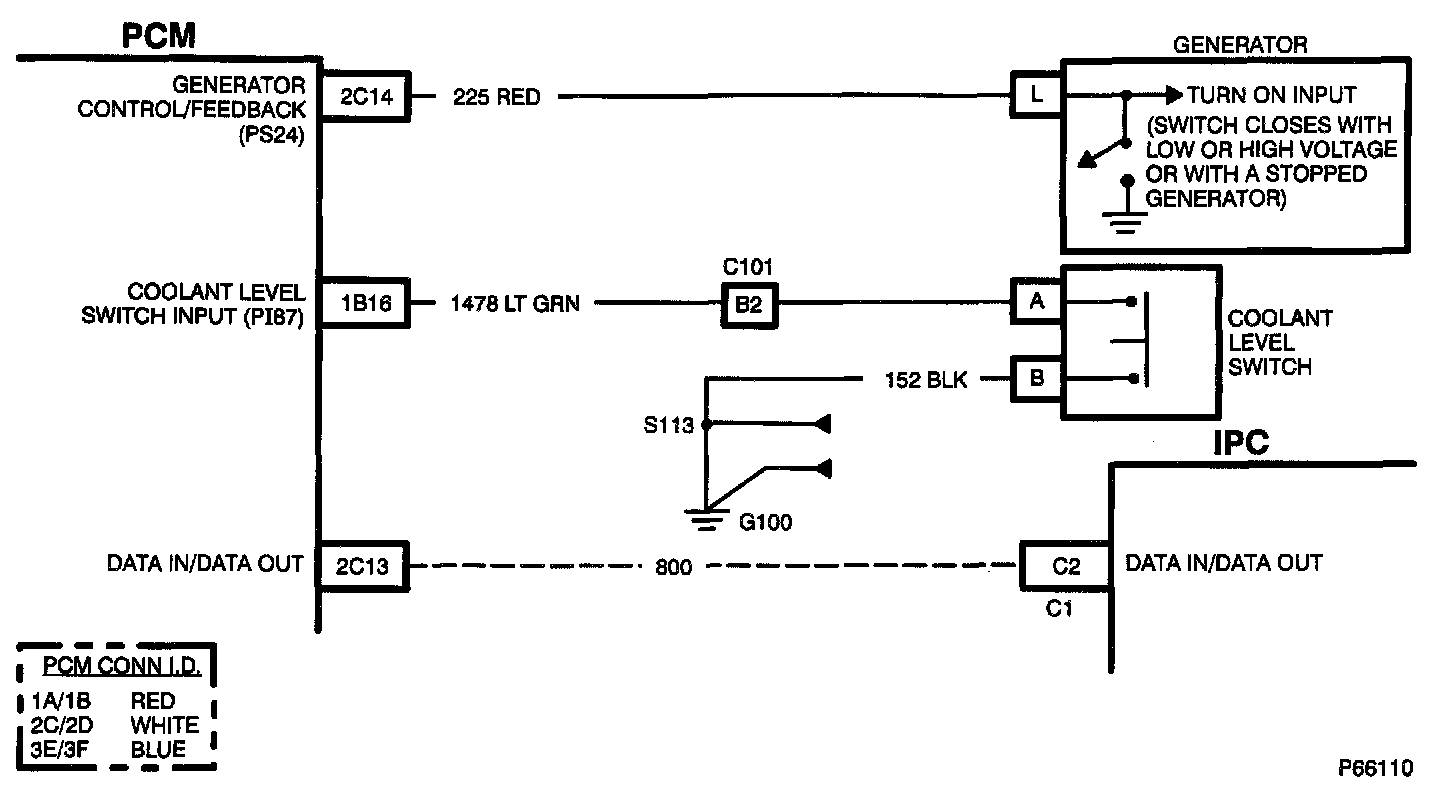 This diagnostic monitors the generator feedback and compares it to the generator control in the PCM. When the PCM commands the generator to be 'ON' and the feedback indicates that it is 'OFF' for 15 seconds, Code P110 will set.
