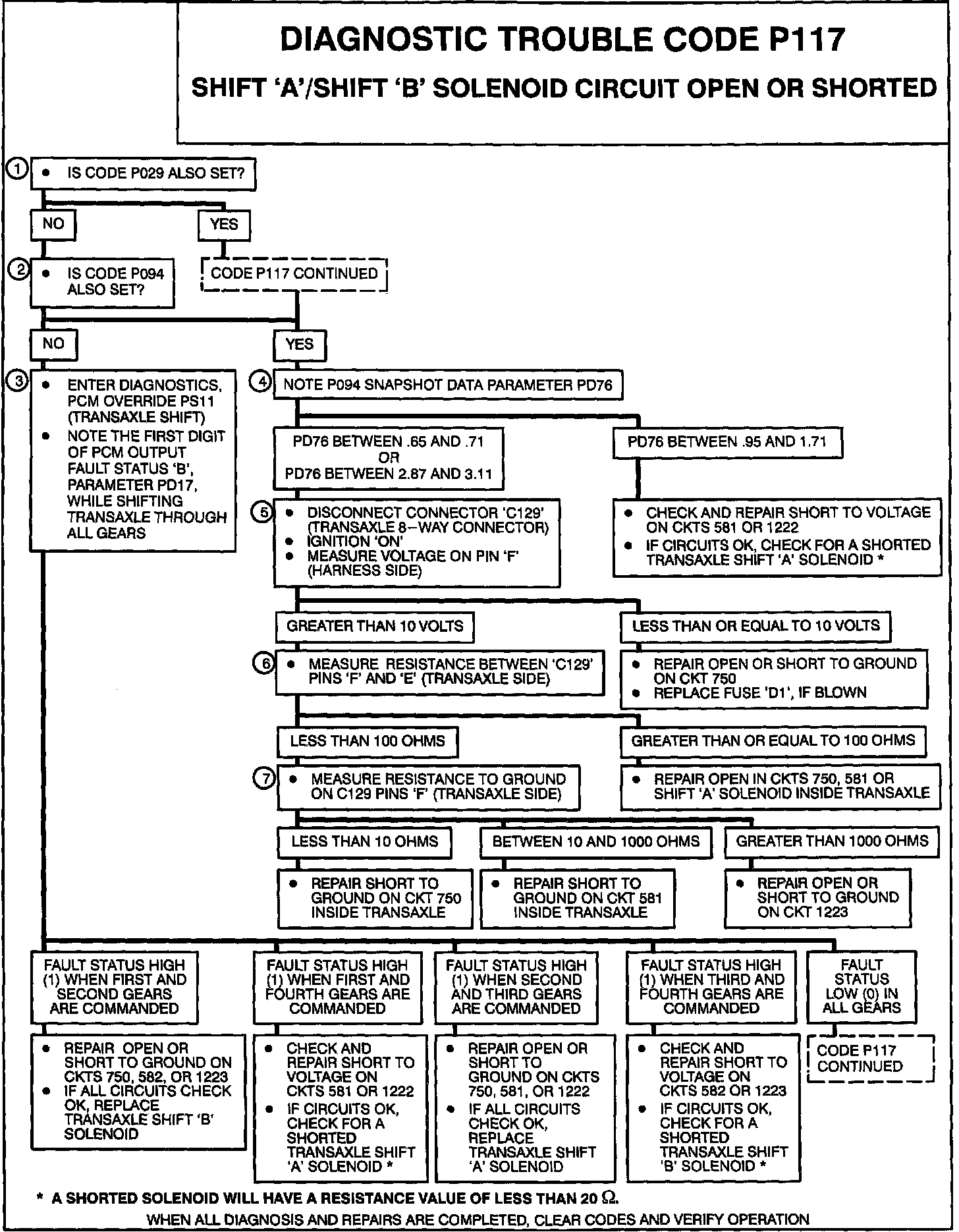 This diagnostic test monitors the Shift 'A' and Shift 'B' outputs from the PCM and increments a counter when the output is different than what is commanded. When the counter reaches 10, Code 117 is set. If at any time before the counter reaches 10 the output is the same as what is commanded, the counter Will be reset to zero.