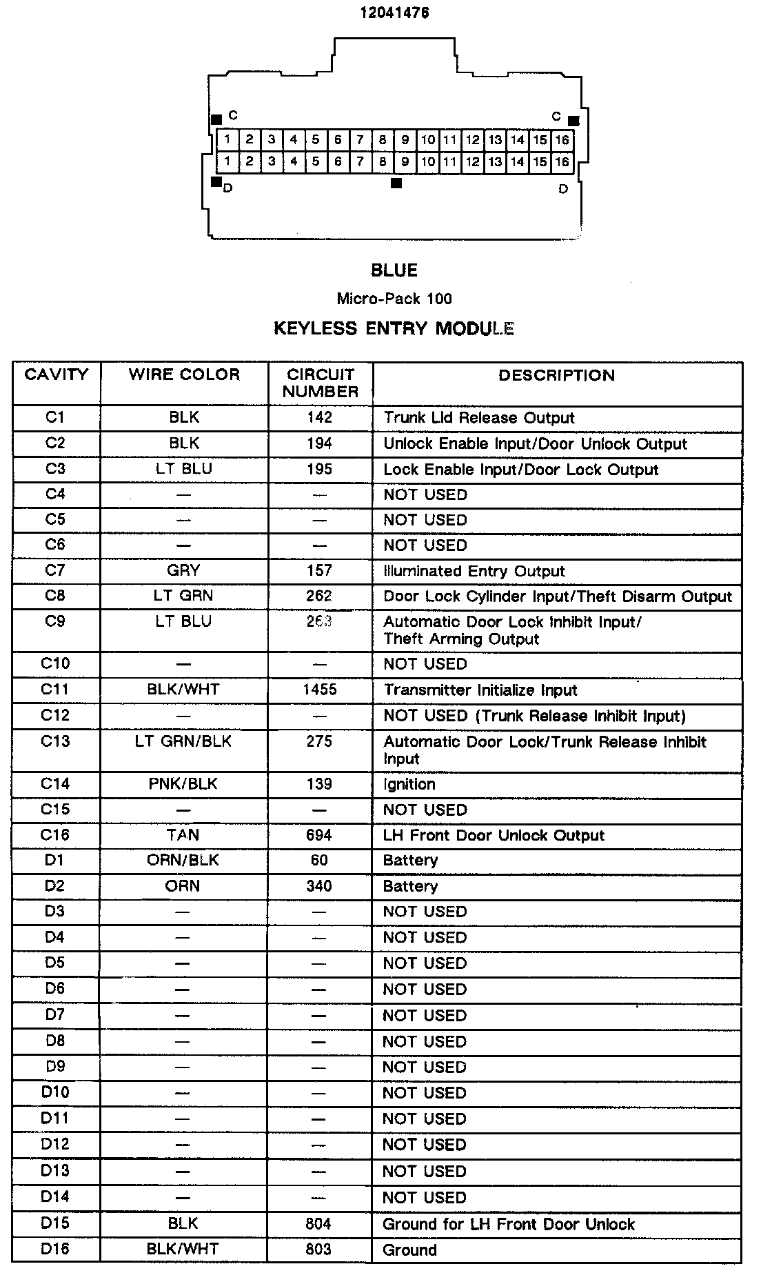 Keyless Entry Module: Diagrams