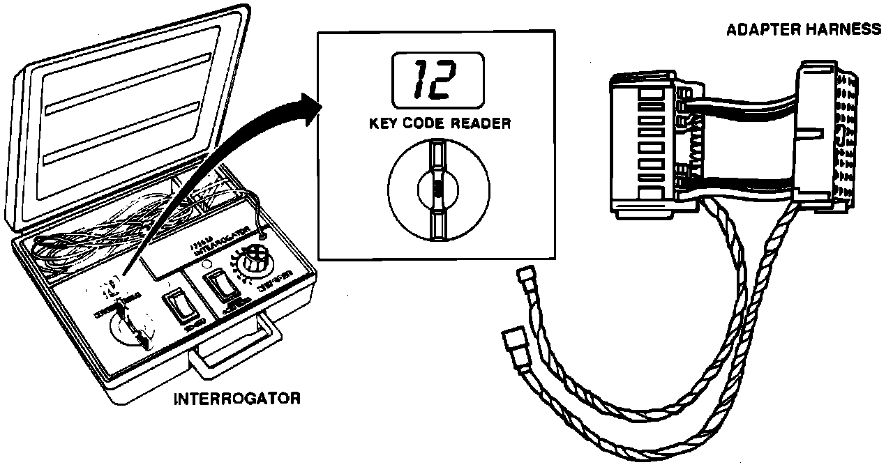 The J35628 Interrogator or equivalent can be used to determine the proper electrical code of the key.