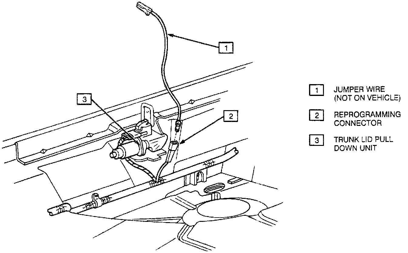 2. Ground black single wire connector located at trunk pull down unit.