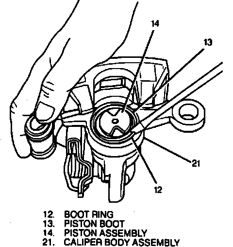4. Using a small wooden or plastic tool, remove piston seal from caliper bore groove.