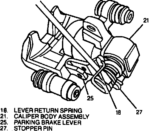 6. If lever return spring replacement is required, remove by using a screwdriver to disengage return spring from parking brake lever, then unhook spring from stopper pin, Fig. 5.